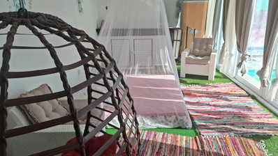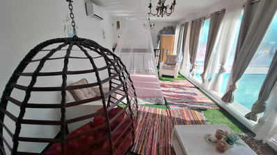 Externally, part of the house has been enclosed with aluminum doors and can be used as a studio, relaxation area, office, or guest space. This area also includes its own shower and toilet, offering additional flexibility and convenience.