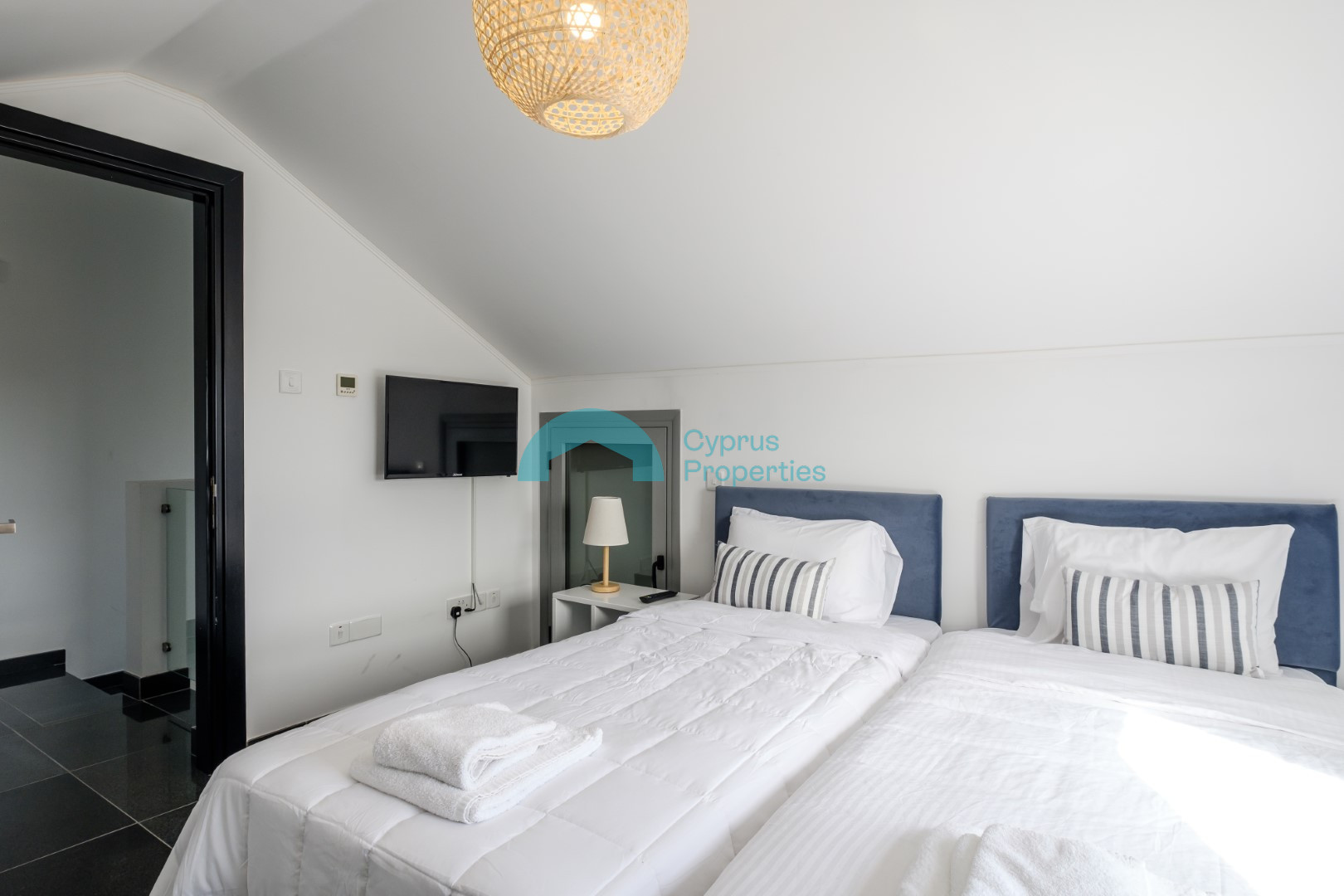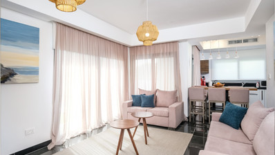 Situated two minutes walk from Pervolia Blue Flag Beach and a mere three minute walk away from the historic old Faro lighthouse and the rural authentic coastline with its clear, naturally energizing waters. Five minutes away from the centre of Pervolia village with its traditional style cafes, restaurants and bars, Larnaca International Airport is conveniently situated 10 minutes away and15 minutes away from Larnaca City centre.