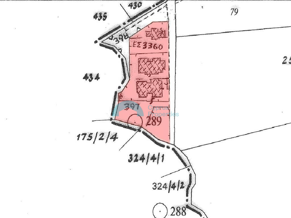 Incomplete residential development comprising 1 incomplete house and inexhaustible development rights, in Emba Community, of Paphos District, approximately 330 meters east of Panagia Chryseleousa church. Incomplete residential development comprising 1 incomplete house and inexhaustible development rights, in Emba Community, of Paphos District, approximately 330 meters east of Panagia Chryseleousa church. The property is situated close to all necessary amenities and services. In addition, it enjoys good access to the neighboring communities and municipalities. The development consists of 3 two-storey houses, one incomplete residence, and inexhaustible development rights, with the properties for sale relating to the incomplete residence, and inexhaustible development rights. The incomplete residence has been built within no. 7 on the ground floor of the special horizontal division plan, with a land area of approximately 241 sq.m. and is located at the point where the ground floor and first floor framework has been completed. According to the title deed, the permitted development is up to 100 sq.m. The inexhaustible development rights are located at no. 8 on the ground floor on the special horizontal division plan, with a land area of approximately 645 sq.m. It has an irregular shape with a slightly sloping ground surface and is accessed thru a registered road with a frontage of approximately 27 meters. According to the title deed, the permitted development is up to 430 sq.m. Each property has a separate title deed. The properties fall within Residential Zone Ka8 with a building coefficient of 60%. The properties are sold as a single unit. The asset does not qualify for the 50% reduction of property transfer fees imposed or levied by the Department of Lands and Surveys (Fees and Charges) Law (Cap.219). The asset does not qualify for the 50% reduction of property transfer fees imposed or levied by the Department of Lands and Surveys (Fees and Charges) Law (Cap.219).