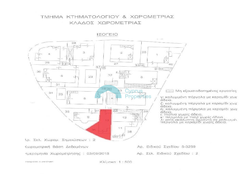 Τwo-storey villa in a quiet location in Erimi Community in Limassol District, at a distance of 380 meters (approx.) south of the motorway, 570 meters (approx.) north of Erimi Community Council and 3,7 kilometres northeast of ancient Kourion.The house abuts Salaminos street along its southern border. Τwo-storey villa in a quiet location in Erimi Community in Limassol District, at a distance of 380 meters (approx.) south of the motorway, 570 meters (approx.) north of Erimi Community Council and 3,7 kilometres northeast of ancient Kourion.The house abuts Salaminos street along its southern border. The property is situated close to all necessary amenities and services such as supermarkets, schools, restaurants, etc. In addition, it enjoys good access to the motorway, the city of Limassol and the neighbouring communities.The house was constructed in 2008, and it is part of the complex " BAY VIEW ", and its level of construction and maintenance is good. It consists of a living room, dining room, kitchen/dining room/sitting room, guest toilet, verandas and yard on the ground floor. The 1st floor consists of 3 bedrooms (one is ensuite with a shower), a main bathroom, and verandas. The area of the internal spaces, as per the Title Deed, is 149 sqm and the uncovered verandas 31 sqm.The house is vacant and it is suitable for private use or for rental with a good return. The property has a separate title deed. The asset does not qualify for the 50% reduction of property transfer fees imposed or levied by the Department of Lands and Surveys (Fees and Charges) Law (Cap.219). The asset does not qualify for the 50% reduction of property transfer fees imposed or levied by the Department of Lands and Surveys (Fees and Charges) Law (Cap.219).