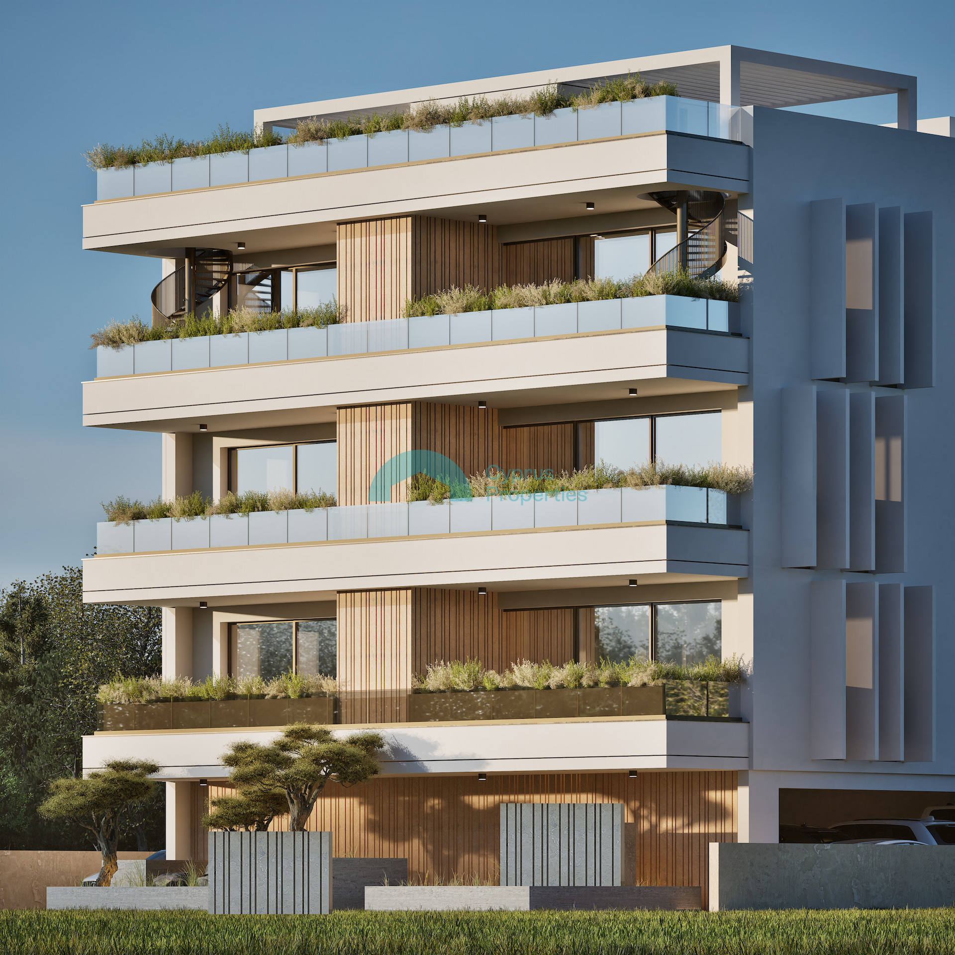 The building features spacious layouts, premium finishes, and smart energy-efficient living, including two parking spaces per apartment, energy-efficient glazing, and advanced climate systems. High-performance insulation (8 cm façade, 10 cm roof) ensures excellent thermal efficiency and year-round comfort.