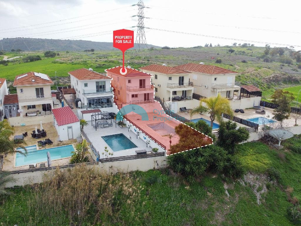 Semi-detached two-storey three-bedroom house in the community of Pyla, Larnaca district. The property is located approximately 1.2 kilometers south of the community center and approximately 450 meters west of the Larnaca-Ayia Napa highway. Semi-detached two-storey three-bedroom house in the community of Pyla, Larnaca district. The property is located approximately 1.2 kilometers south of the community center and approximately 450 meters west of the Larnaca-Ayia Napa highway. The house was built around 2008 and consists of a ground floor and first floor. The ground floor consists of an open-plan kitchen/dining room/living room, a guest toilet, and verandas. The first floor consists of three bedrooms (the master bedroom with an en-suite bathroom with shower), a room with a bathroom/shower, and verandas. The property also has an attic. Outside, there is a covered parking area and a swimming pool. The internal area is 174 sq.m. (approx.) and 12 sq.m. (approx.) of covered verandas. The house was built on a plot with a total area of approximately 433 sq.m. and falls within Residential Zone H2 with a building factor of 90%. The property has a Title Deed. The asset does not qualify for the 50% reduction of property transfer fees imposed or levied by the Department of Lands and Surveys (Fees and Charges) Law (Cap.219). The asset does not qualify for the 50% reduction of property transfer fees imposed or levied by the Department of Lands and Surveys (Fees and Charges) Law (Cap.219).