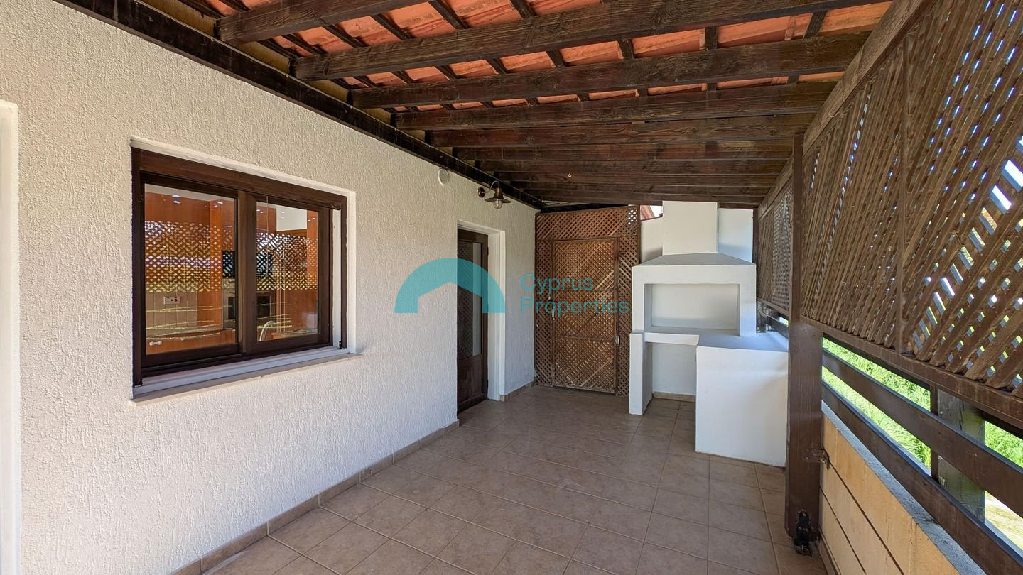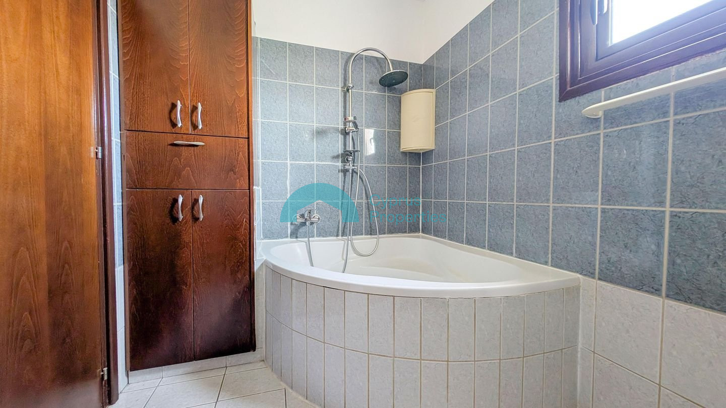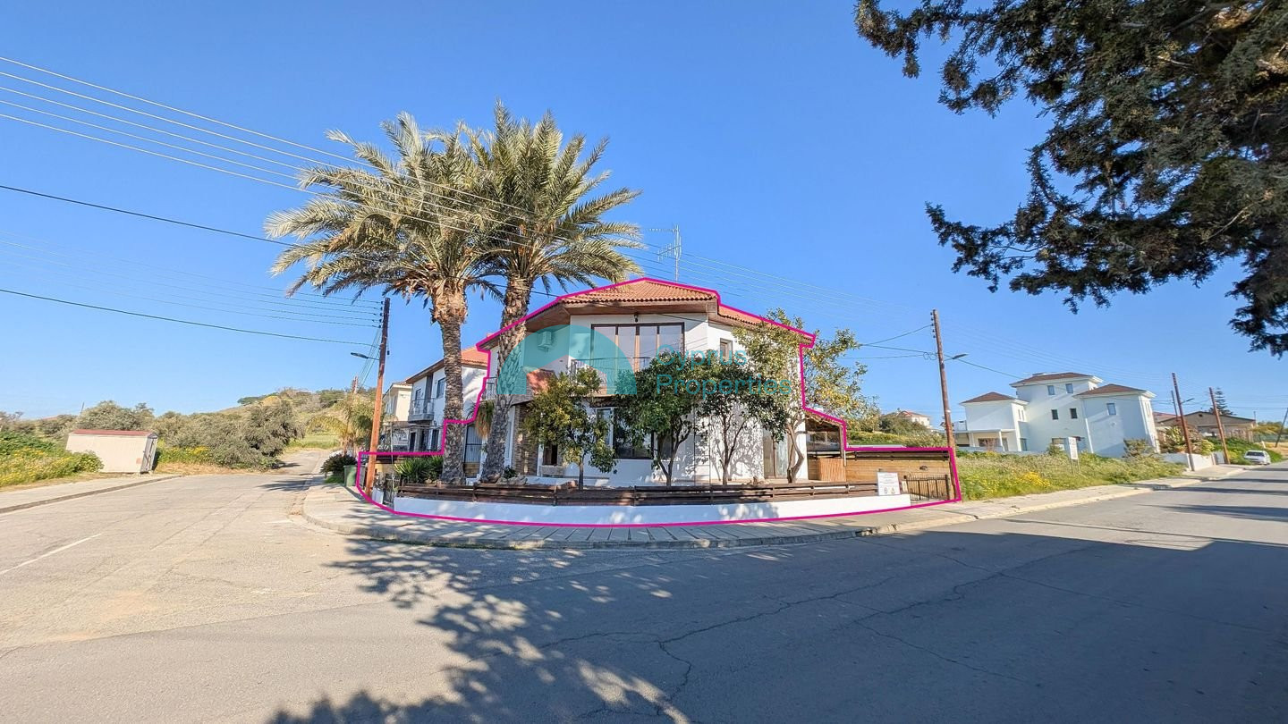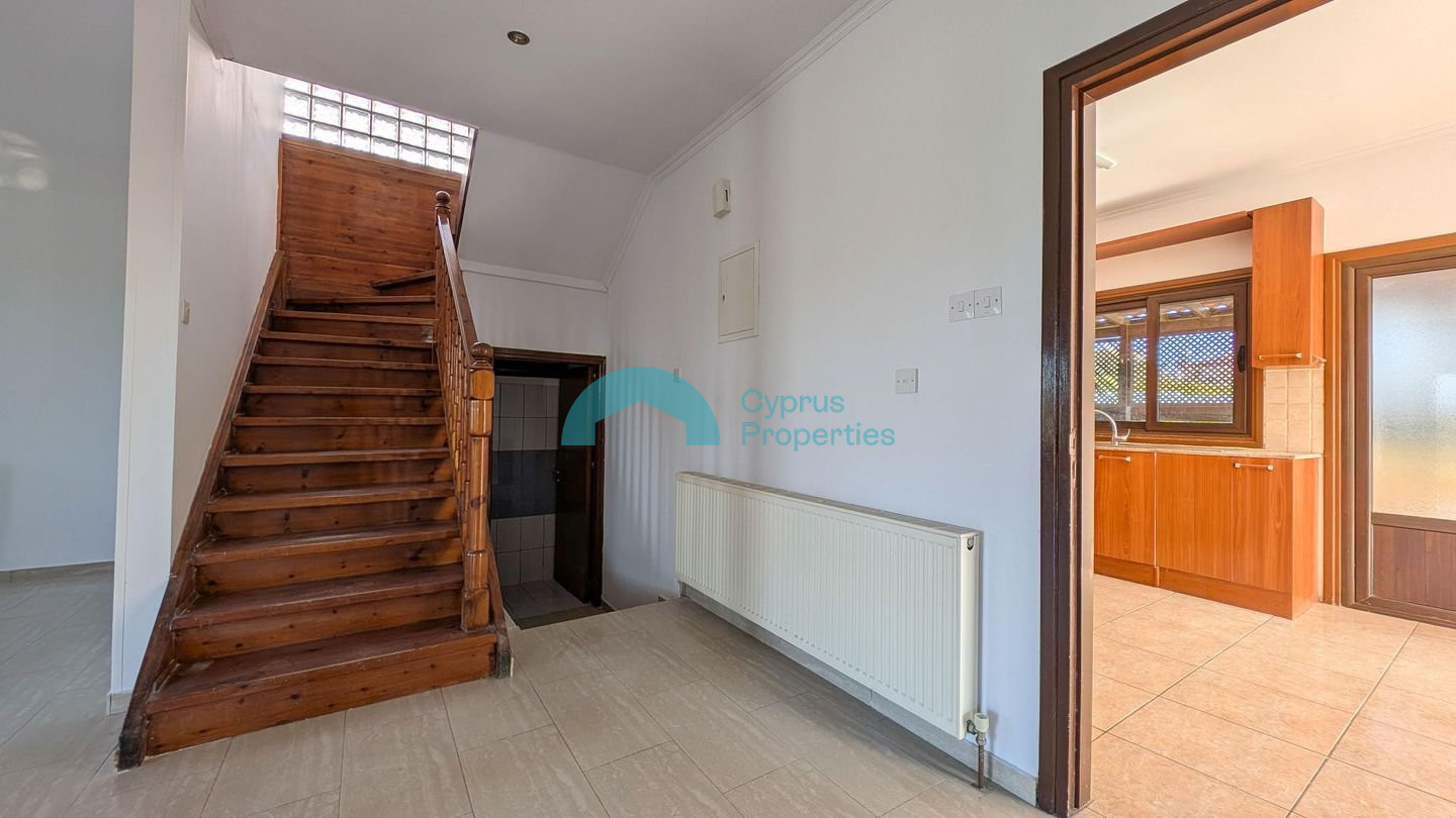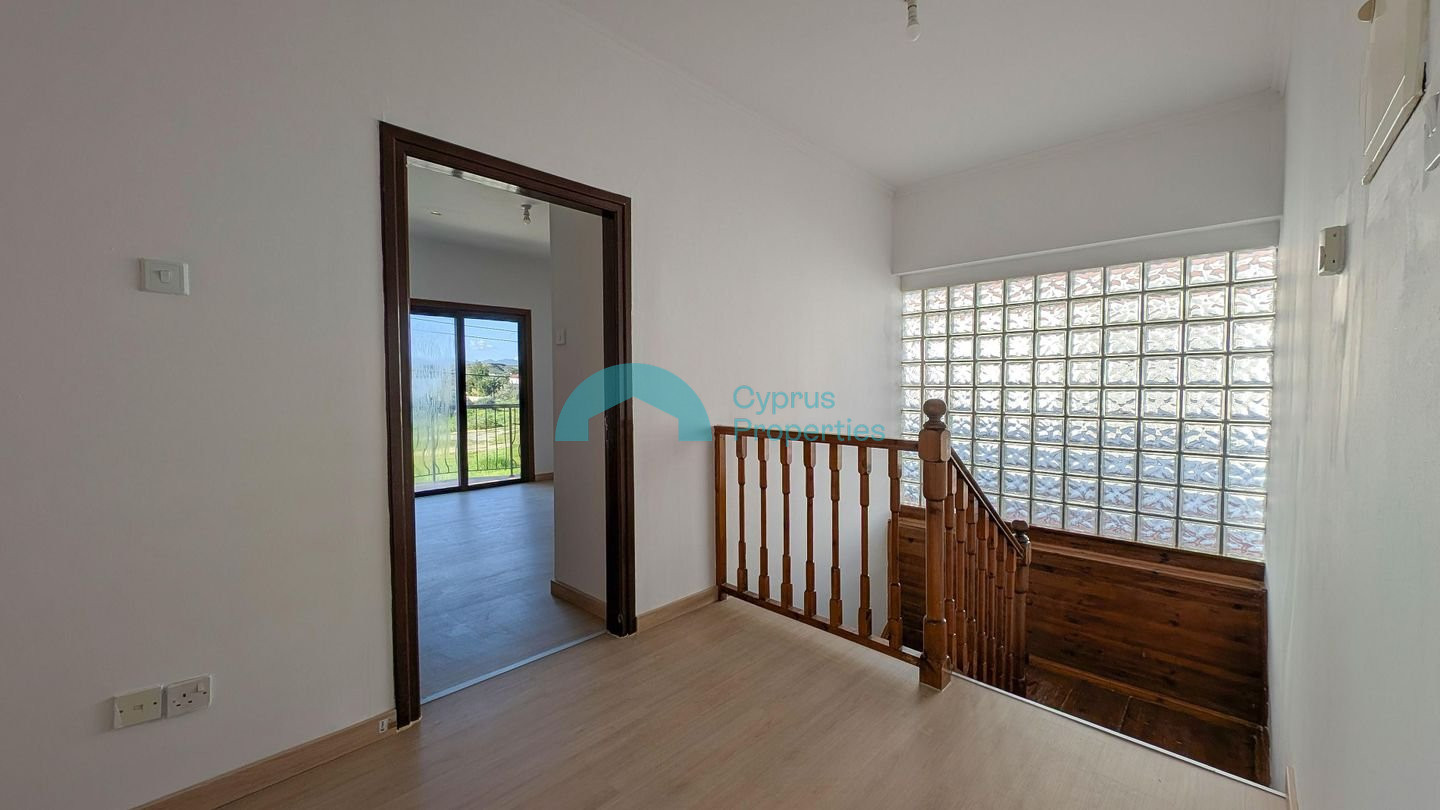 A two-storey detached house situated in the residential area of Tseri. The 1/2 share corresponds to the eastern house, with a land share of approximately 274 sq.m. Property Highlights: • Land: 1/2 share of 548 sq.m. plot (approx. 274 sq.m.) • Enclosed area: 181 sq.m. • Covered verandas: 10 sq.m. • Uncovered verandas: 26 sq.m. • Attic: 13 sq.m. • Ancillary building: 5 sq.m. • Year of Construction: 2006 Internal Layout: • The ground floor comprises an open plan living and sitting area with a bar, kitchen with dining area, laundry room, and a guest W/C. • The first floor consists of four bedrooms, including a master bedroom with en-suite bathroom, a shared bathroom, and two covered verandas. • Additional features include an attic storage area accessed via a folding staircase and a small ancillary building within the yard. The asset is situated approx. 300m northwest of B' Tseri Elementary School and approx. 540m southwest of A' Tseri Elementary School. There is a Distribution Agreement in place. Pending issuance of Energy Performance Certificate.